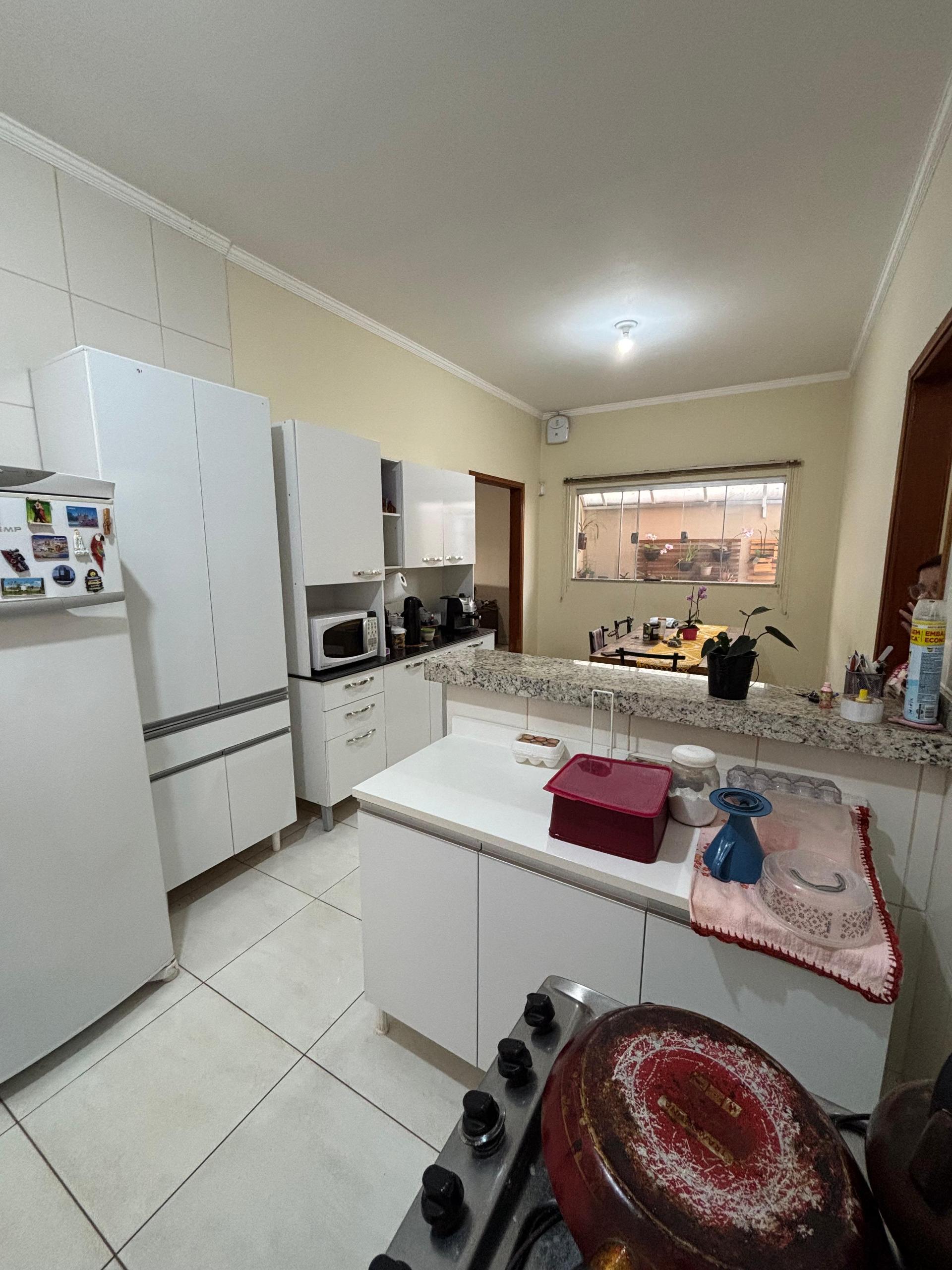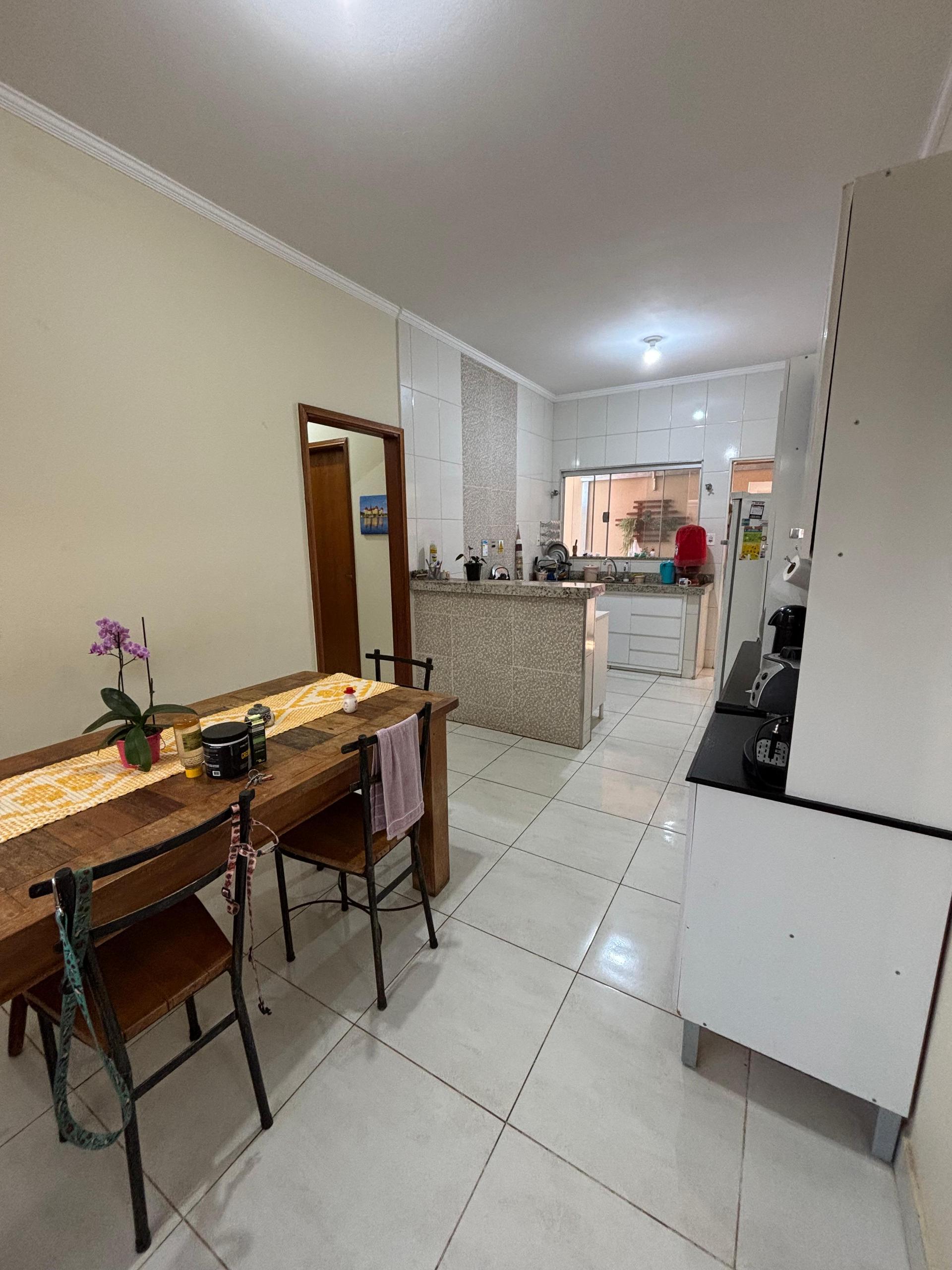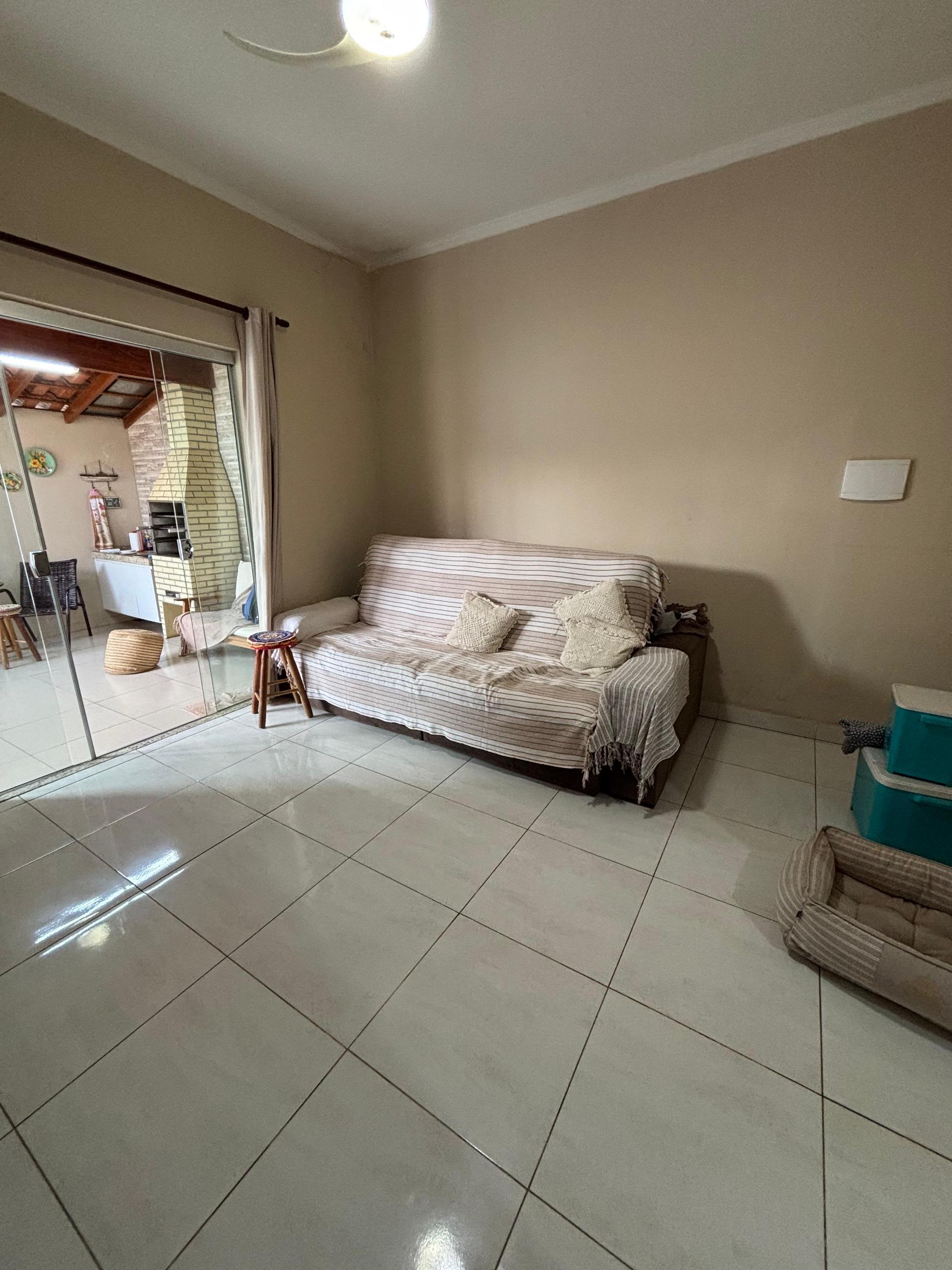 Sala ampla e aconchegante, cozinha com armários, banheiro social, 03 dormitórios sendo 01 suíte, área de serviço, área gourmet com churrasqueira perfeita para receber amigos e família, quintal espaçoso, parte gramado e parte com piso, ótimo para receber visitas ou aproveitar momentos de lazer, área de serviço, garagem coberta para 02 veículos.