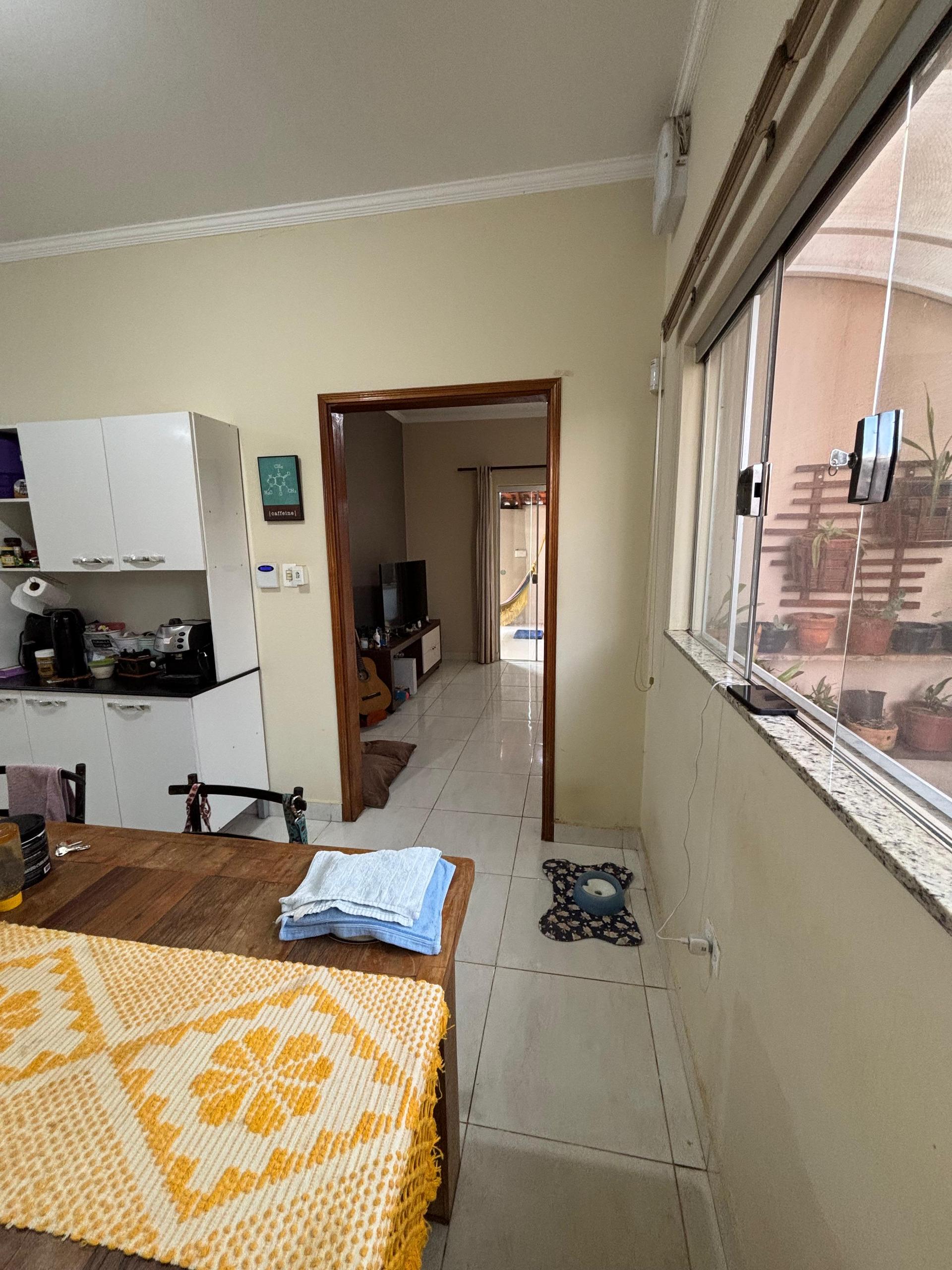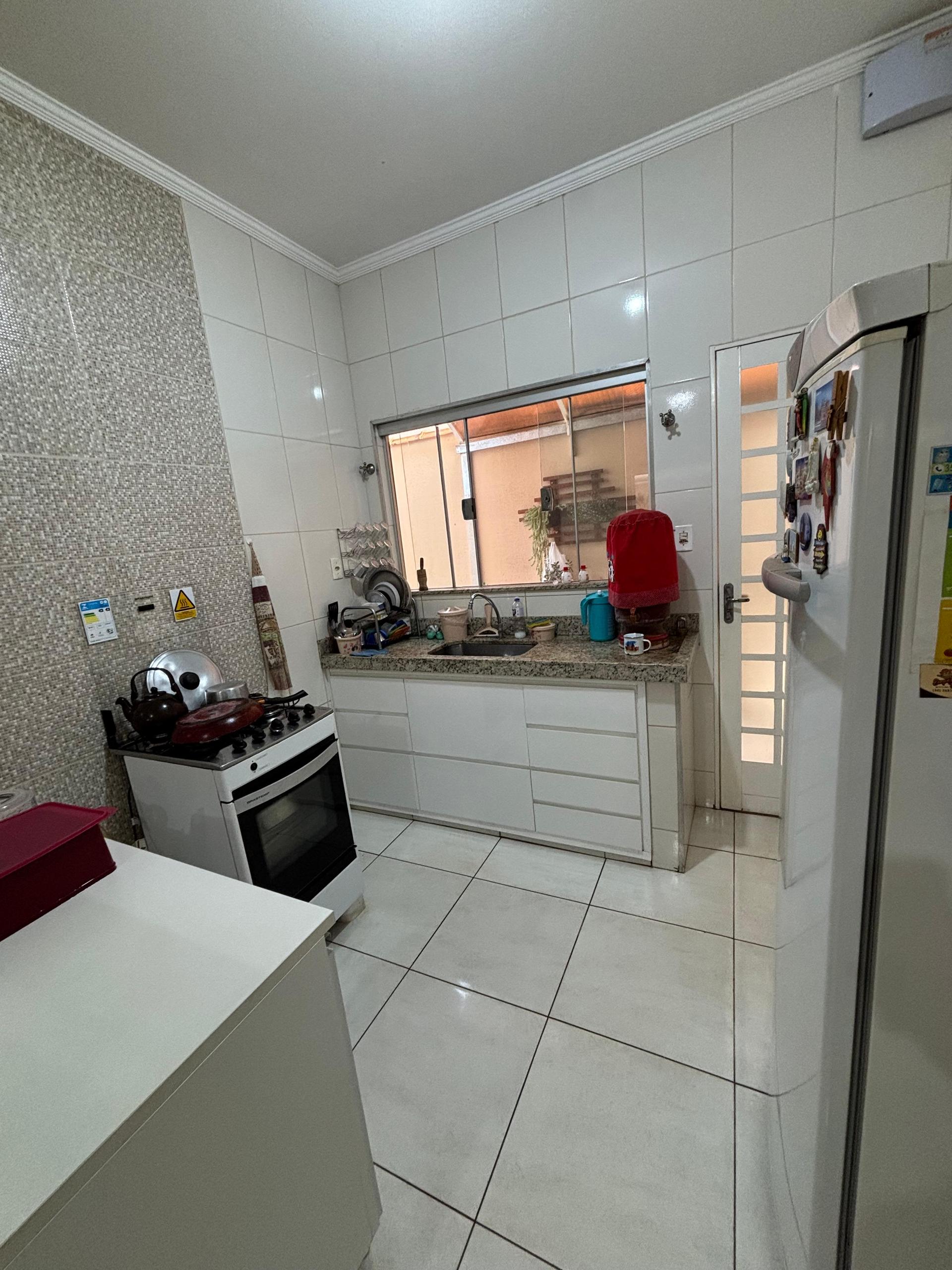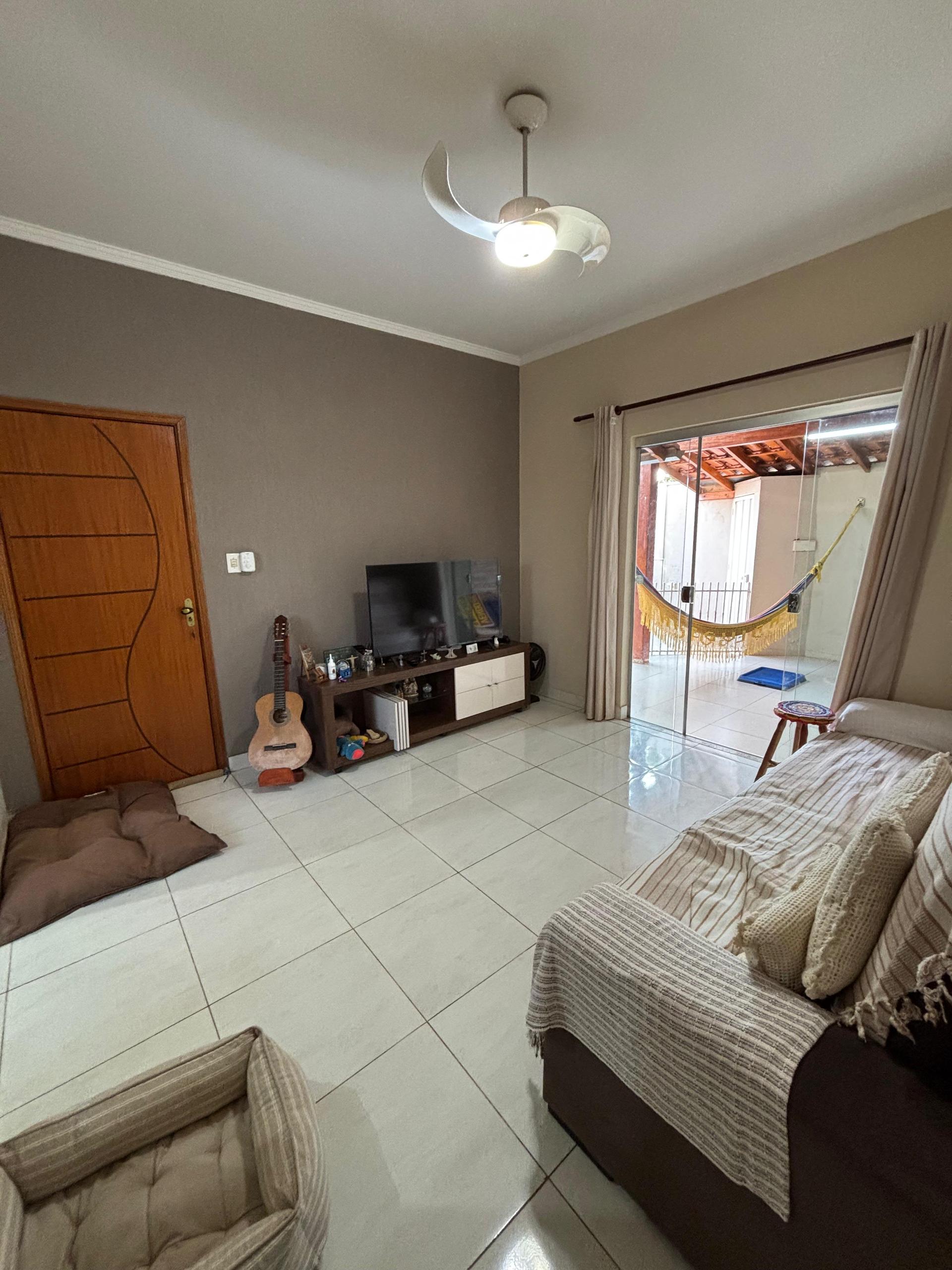 Sala ampla e aconchegante, cozinha com armários, banheiro social, 03 dormitórios sendo 01 suíte, área de serviço, área gourmet com churrasqueira perfeita para receber amigos e família, quintal espaçoso, parte gramado e parte com piso, ótimo para receber visitas ou aproveitar momentos de lazer, área de serviço, garagem coberta para 02 veículos.