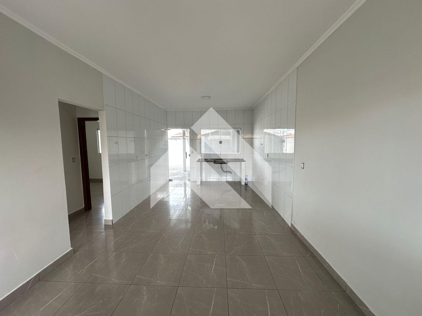 Sala e cozinha conjugadas, banheiro social, 03 dormitórios, garagem coberta e área coberta nos fundos.